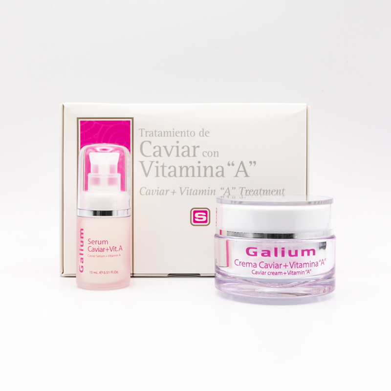 En galium, puedes probar nuestro sérum y  crema de Vitamina A + Caviar, Mezclamos las propiedades del caviar que contiene sustancias nutritivas que benefician la hidratación de la piel, con la  vitamina A, que ayuda a la regeneración celular y a la producción de colágeno y elastina de las fibras de la piel.